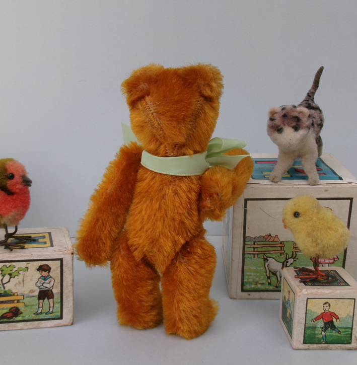 Rare tiny Crämer teddy bear, made from vibrant orange mohair